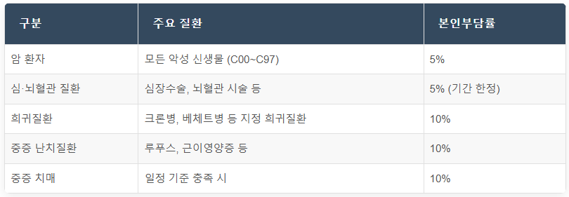 📌 예를 들어, 암 진단을 받은 환자는 5년 동안 진료비의 5%만 부담하면 됩니다.