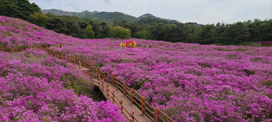 1971년 이 지역에 시범 면양목장이 조성되며 면양이 방목되었고, 철쭉을 제외한 대부분의 잡초와 나무가 제거되었습니다. 이에 따라 철쭉만 자연스럽게 살아남아 지금의 대규모 철쭉 군락지가 형성되었으며, 매년 수많은 방문객이 이 아름다운 풍경을 보기 위해 찾습니다.
