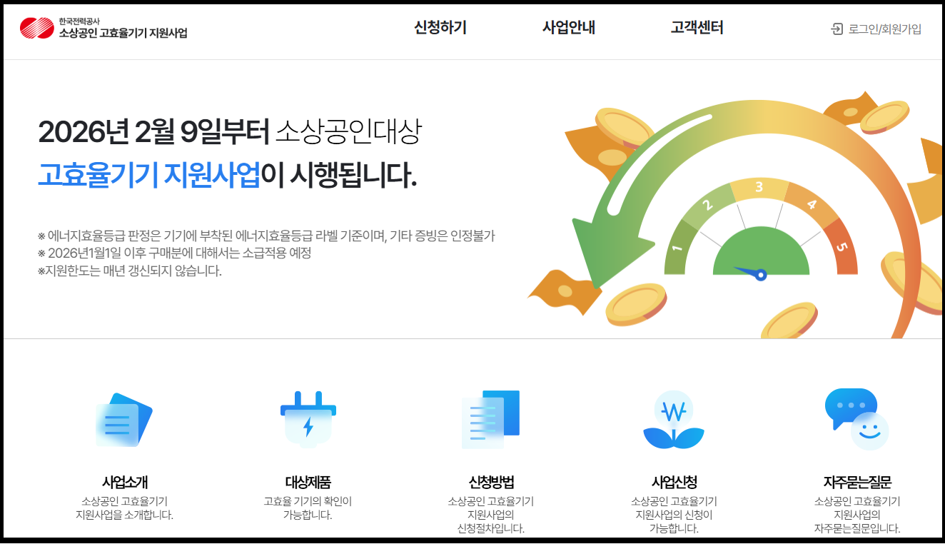 - 소급 적용: 2026년 1월 1일 이후에 이미 고효율기기를 구매한 제품이 있다면, 필수 증빙 서류를 갖추어 소급 신청이 가능합니다. (단, 개방형 냉장고 문 설치는 소급 불가)