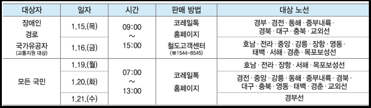 교통약자를 포함한 전 국민이 참여하는 메인 예매 기간입니다. 오전 7시라는 이른 시간에 시작되니 주의하세요!