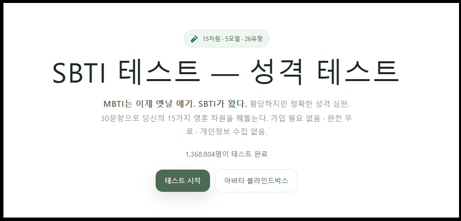 요즘 SNS에서 난리 난 SBTI 테스트, 혹시 들어보셨나요? MBTI의 유머 버전인 SBTI의 뜻부터 만취자, 순수 바보 등 16가지 유형 분석, 그리고 정확한 링크 찾는 법까지 2026년 최신판으로 정리해 드립니다.